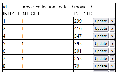 Once I could retrieve movie data, I built a corresponding table in an SQLite database to store it, which looks a little something like this: